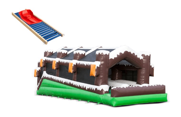 Zoom down the roller track as if you’re descending from the highest mountain! Climb up and slide down with your sled cart. An exhilarating attraction for both young and old. The Double Roller Track – Winter is covered, making it an all-season inflatable attraction. Not just one, but two tracks to ride on with sled carts. Just like skiing down a real slope, complete with snow effect, skis, and a large snow-covered tree. Add this thrilling attraction to your rental assortment and offer a refreshing type of entertainment for any event!
